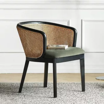 Solid Wood Rattan Dining Chairs with Modern Backrest
